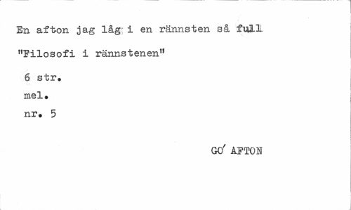 //// En af "ton jag låg: i en rännsten så full. //// "Filosofi i rännstenen" //// 6 str. mel» nr. 5 //// GO' AFTON ////