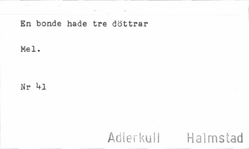 //// En bonde hade tre döttrar Mel. //// Nr bl //// Adlerkull Halmstad ////