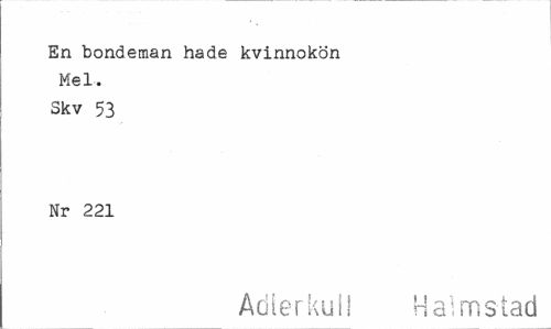 //// En bondeman hade kvinnokön Mel. Skv 53 //// Nr 221 //// Adierkull Halmstad ////