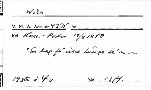 //// V. M. A. Acc. nr V J ?/^ Sn... //// Ref. - 'fö //// * " t/e. ^___ //// I Sid. ////
