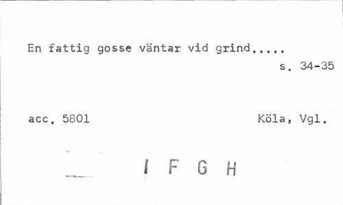 //// En fattig gosse väntar vid grind... //// s. 34-35 //// acc. 5801 Köla, Vgl, //// I F 6 H //// '—- - ////