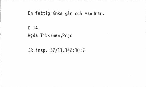 //// En fattig änka går och vandrar. D 14 //// Agda Tikkanen,Pojo SR insp. 57/11.142:10:7 ////
