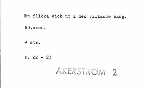//// En flicka gick ut i den villande skog. Rövaren. //// 9 str. //// s. 22 - 23 //// ÅKERS !RDM 2 ////