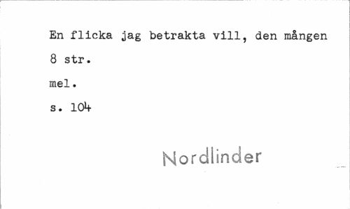 //// En flicka jag betrakta vill, den mången 8 str. mel. s. 104- //// Nordiinder ////