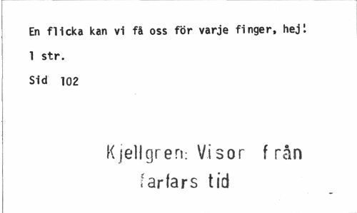 //// En flicka kan vi få oss för varje finger, hej i 1 str. Sid 102 //// Kjellgren: Visor f rån farfars tid ////