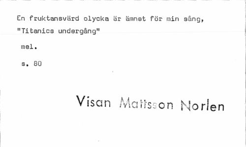 //// En fruktansvärd olycka är ämnet för min sång, "Titanics undergång" //// mel. s. BO //// Visan Mattsson Horlen ////