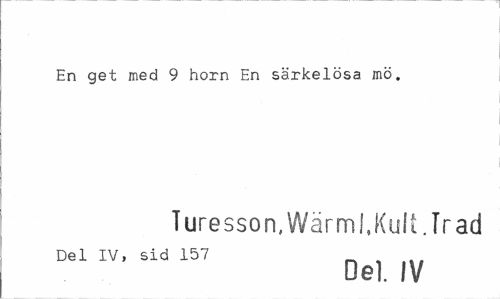 //// En get med 9 horn En särkelösa mö. //// Turesson,Wärml,Kult .Trad //// Del IV, sid 157 . //// Uel. IV ////