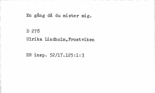 //// En gång då du mister mig. D 278 //// Ulrika Lindholm,Frostviken SR insp. 52/17.125:1:3 //// I ////