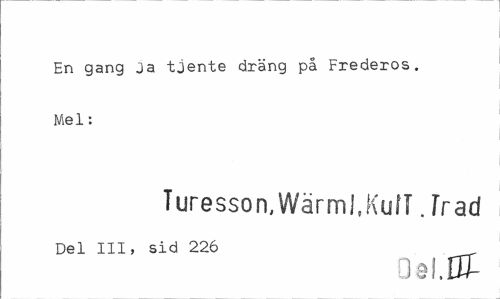 //// En gang Ja tjente dräng på Frederos. Mel: //// Turesson,Wärml.KufT. Träd //// Del III, sid 226 . //// Oal.DX ////