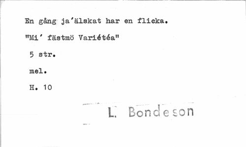 //// En gäng ja'älskat har en flicka. "Mi' fästmö Variétéa" 5 str. mel. H. 10 //// L, Bondeson ////