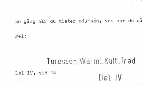 //// En gång när du mister mäj-san, vem har du di Mel: //// Turesson,Wärm!,Kult.frad //// Del IV, sid 74 //// Del. IV ////