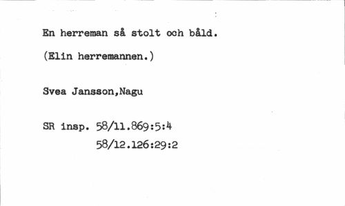 //// En herreman så stolt och båld. (Elin herremannen.) //// Svea Jansson,Nagu //// SR insp. 58/11.869:5:^ 58/12.126:29:2 ////