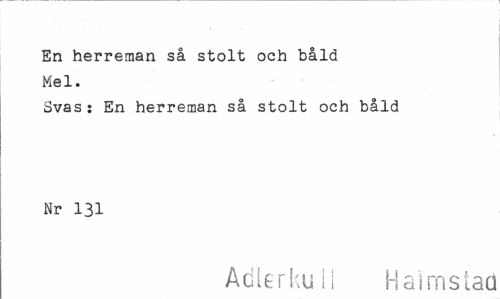 //// En herreman så stolt och båld Mel. //// Svas: En herreman så stolt och båld Nr 131 //// Adierku M Haimstaö ////