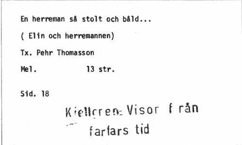 //// En herreman så stolt och båld... ( Elin och herremannen) Tx. Pehr Thomasson Mel. 13 str. //// Sid. 18 //// Korren-, Visor f rån fartars tid ////