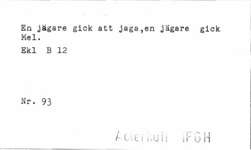 //// En jägare gick att jaga,en jägare gick Mel. //// Ekl B 12 Nr. 93 //// A tie i' mil är GH ////
