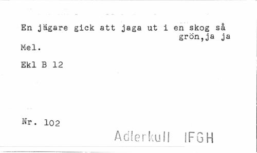//// En jägare gick att jaga ut i en skog så //// grön,ja ja //// Mel. //// Ekl B 12 Nr. 102 //// Adlerkull IFGH ////