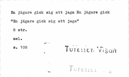 //// En jägare gick sig att jaga En jägare gick "En jägare gick sig att jaga" 8 str. mel. //// TuVtuc r, V.san //// Y //// b c reuci , . ////