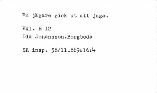 //// En jägare gick ut att jaga. Ekl. B 12 //// Ida Johansson.Borgboda SR insp. 58/11.869:16:1+ ////
