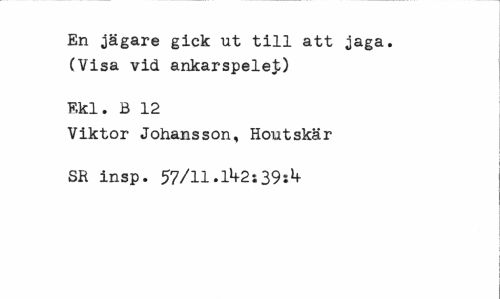 //// En jägare gick ut till att jaga. (Visa vid ankarspelet;) //// Ekl. B 12 //// Viktor Johansson, Houtskär SR insp. 57/11 '1^2;39:*+ ////