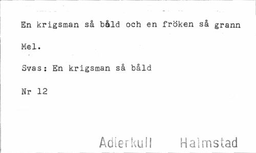 //// En krigsman så båld och en fröken så grann Mel. //// Svas: En krigsman så båld Nr 12 //// Adlerkull Halmstad ////