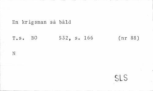 //// En krigsman sä båld //// T.s. BO 532, s. 166 (nr 88) //// N //// SLS ////