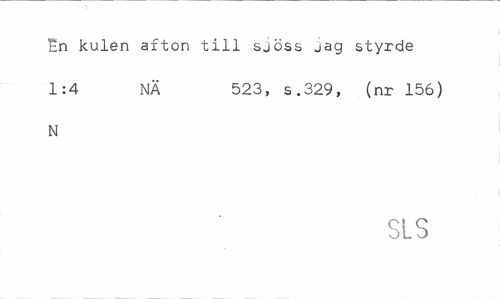 //// En kulen afton till sjöss jag styrde 1:4 NÄ 523, s.329, (nr 156) //// N //// SLS ////