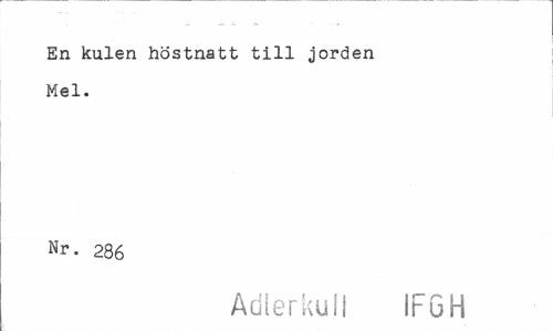 //// En kulen höstnatt till jorden Mel. //// Nr. 286 //// Adierkuii iFGH ////