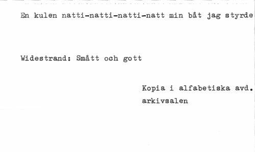 //// En kulen natti-natti-natti-natt min båt jag styrde Vi destrand: Smått och gott //// Kopia i alfabetiska avd. arkivsalen ////