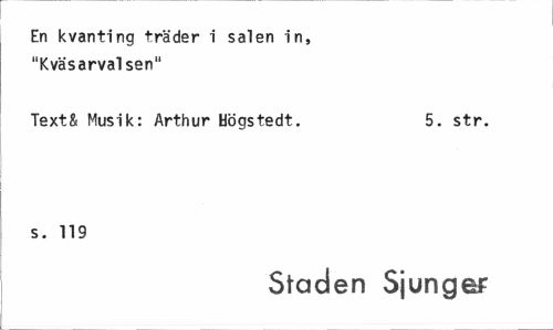 //// En kvanting träder i salen in, "Kväsarval sen" //// Text& Musik: Arthur bögstedt. 5. str. //// s. 119 //// Staden Sjungen ////