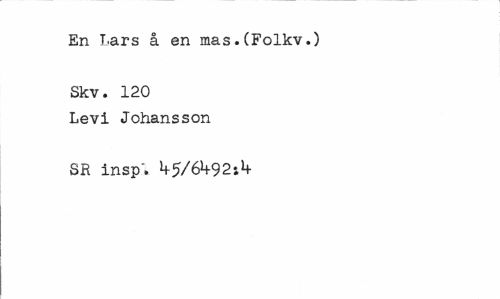 //// En Lars å en mas.(Folkv.) //// Skv. 120 Levi Johansson //// SR insp". U-5/6^92:1* ////