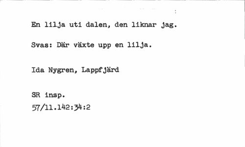 //// En lilja uti dalen, den liknar jag. Svas: Där växte upp en lilja. //// Ida Nygren, Lappfjärd //// SR insp. 57/11.142:34:2 ////