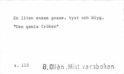 //// En liten ensam gosse, tyst och blyg, "Den gamla fröken" //// s- 112 B. Ollén.Hist. versboken ////