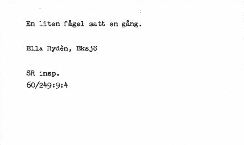 //// En liten fågel satt en gång. //// Ella Rydén, Eksjö //// SR insp. 60/249:9 ////
