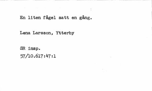 //// En liten fågel satt en gång. //// Lena Larsson, Ytterby //// SR insp. 57/10.617:47:1 ////