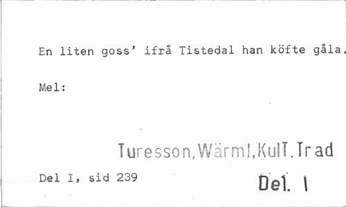 //// En liten goss' ifrå Tistedal han köfte gåla Mel: //// Turesson,Wärml,KulT.Trad //// Del I, sid 239 j ////