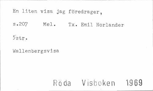 //// En liten visa jag föredrager, s.207 Mel. Tx. Emil Norlander //// 5st?. //// Wallenbergsvisa //// Röda Vssboken 1969 ////
