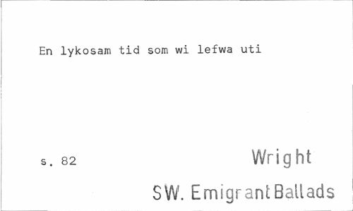 //// En lykosam tid som wi lefwa uti //// s. 82 Wright //// SW. EmigraniBailads ////