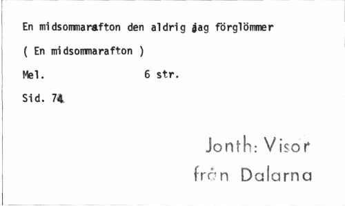 //// En midsommarafton den aldrig äag förglömmer ( En midsommarafton ) Mel. 6 str. //// Sid. 74 //// Jonth: Visor från Dalarna ////