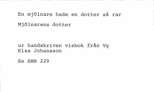 //// En mjölnare hade en dotter så rar Mjölnarens dotter //// ur handskriven visbok från Vg Elsa Johansson //// Se SMB 229 ////