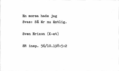 //// En morsa hade jag Svas: Så är nu äntlig. //// Sven Erixon (X-et) //// SR Insp. 56/10.198:5:2 ////