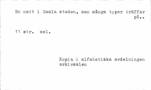 //// En natt i Gamla staden, man många typer träffar //// på.. //// 11 str. mel. //// Kopia i alfabetiska avdelningen arkivsalen ////