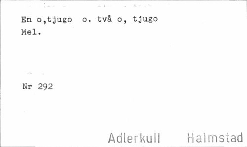 //// En o,tjugo o. två o, tjugo Mel. //// Nr 292 //// Adlerkull Halmstad ////