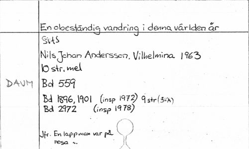 //// _En oloesjoncltCj vandring I yydrl<^en ar__ //// sus //// Nils^han AndlersscT?. Villjel^na. | ?é2> 10 s^r. ^ei //// Bd 55<1 //// Ba (insp 1^72) Rs+rfSW) //// o . " //// ... ////
