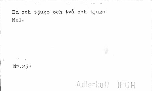 //// En och tjugo och två och tjugo Mel. //// Nr.252 //// A c Tkull IF6H ////
