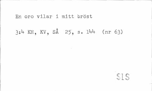 //// En oro vilar i mitt bröst //// KH, KV, SÅ 25, s. l¥+ (nr 63) //// SLS ////