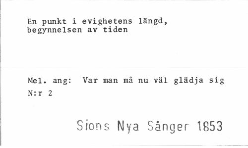 //// En punkt i evighetens längd, begynnelsen av tiden //// Mel. ang: Var man må nu väl glädja sig N: r 2 //// Sions Nya Sånger 1853 ////