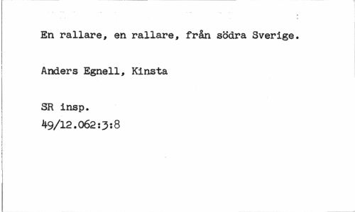 //// En rallare, en rallare, från södra Sverige. //// Anders Egnell, Kinsta //// SR insp. 49/12.062:358 ////