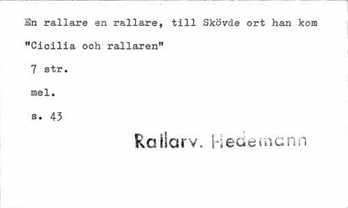 //// En rallare en rallare, till Skövde ort han kom "Cicilia och rallaren" 7 str. mel. s. 43 //// Ro ilar v. heaeuicnn ////