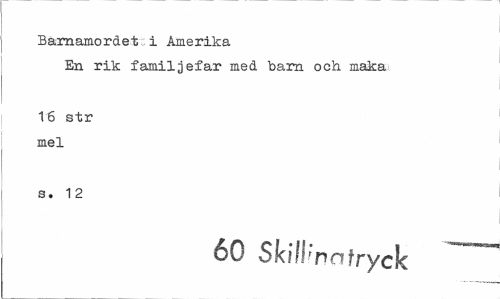 //// Barnamordet:! Amerika //// En rik familjefar med barn och maka //// 16 str mel //// s. 12 //// 60 SkifI;pofryck ////