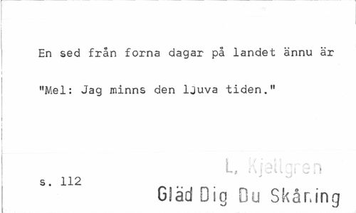 //// En sed från forna dagar på landet ännu är "Mel: Jag minns den ljuva tiden." //// L, Kjeilqren //// s. 112 //// Gläd Dig Du Skåning ////